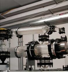 Scambiatori in vetro per potenziare lo scambio termico tra liquidi e vapori. Realizzato in vetro/vetro o vetro/SiC.